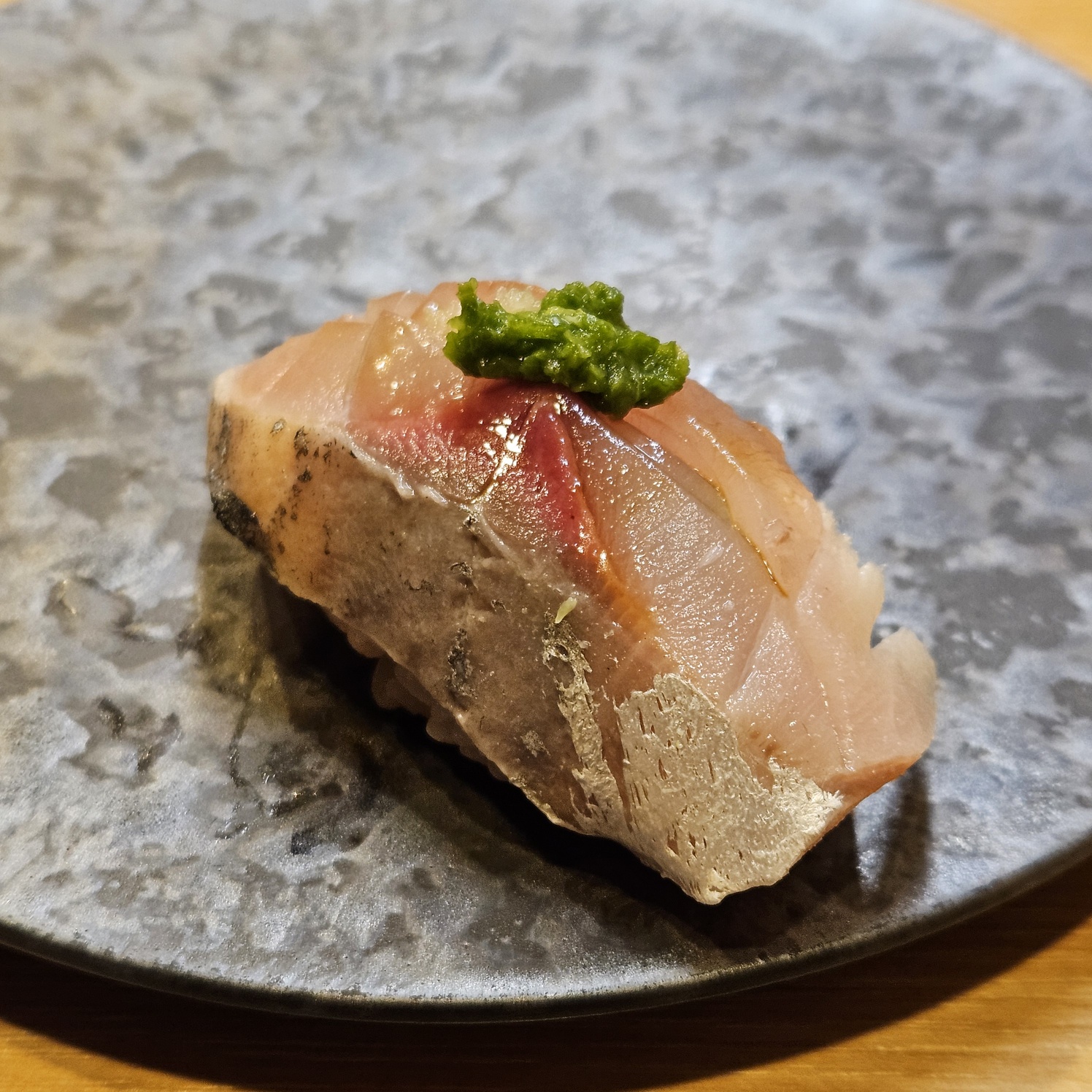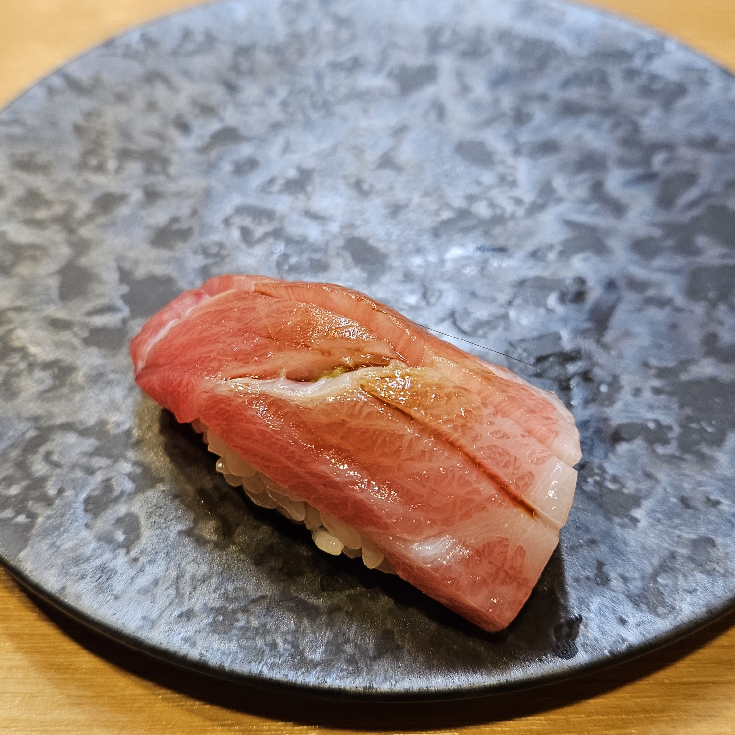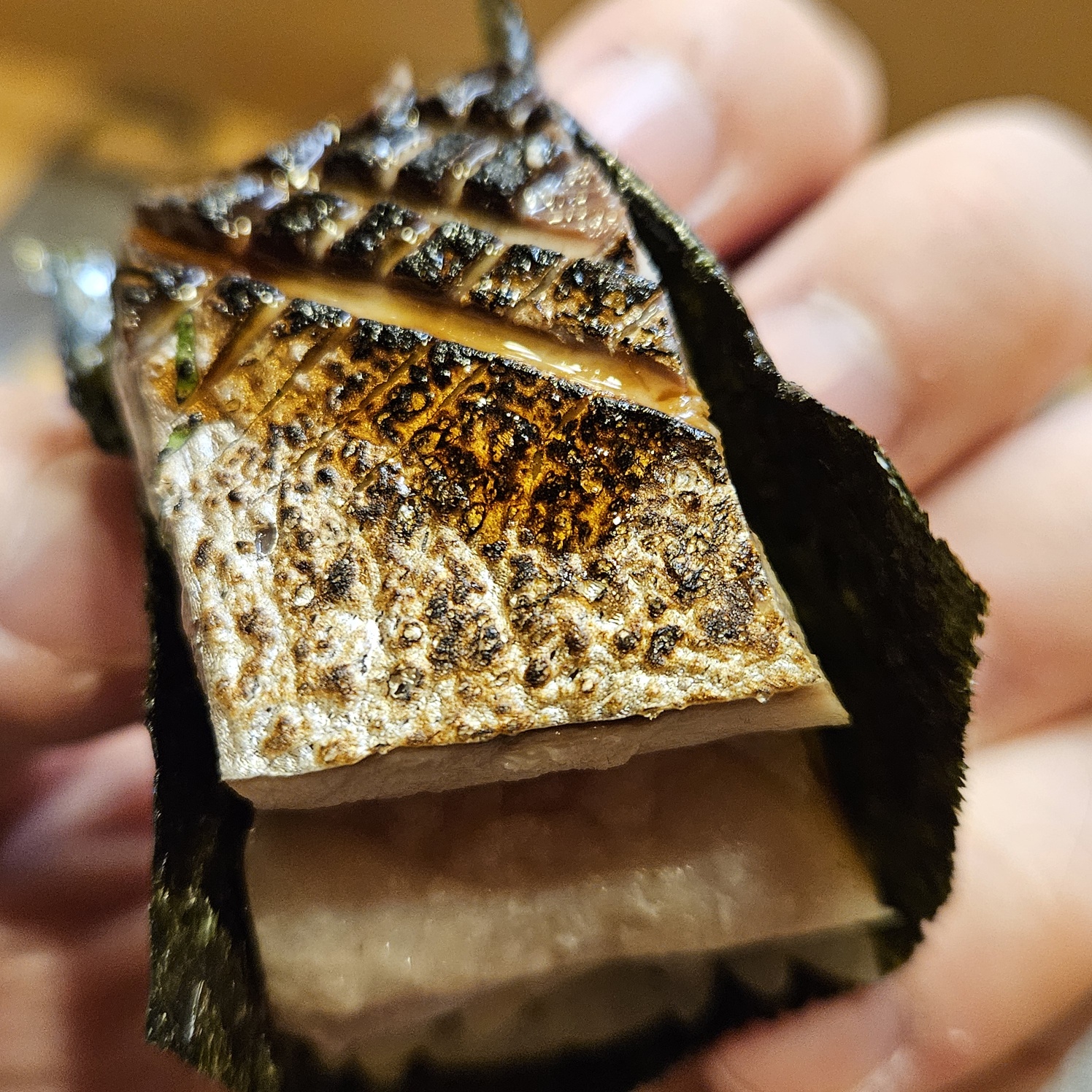 왼쪽은 네기도로마끼. 원래도 기름기가 많아서 고소함이 입 안에 퍼지는 메뉴인데, 큼지막하게 나오니깐 맛이 입 안을 더 꽉 채운다. 중간은 오도로. 식사 초반부나 중반부에 나오면 맛이 너무 강해서 식사가 전반적으로 부담스러워지는데, 끝물에 나와서 좋았다. 오른쪽은 고등어. 껍질 부분에 기름기가 많은데 토치로 껍질 부분을 그을려서인지 지방질이 더 부드럽게 느껴졌다.