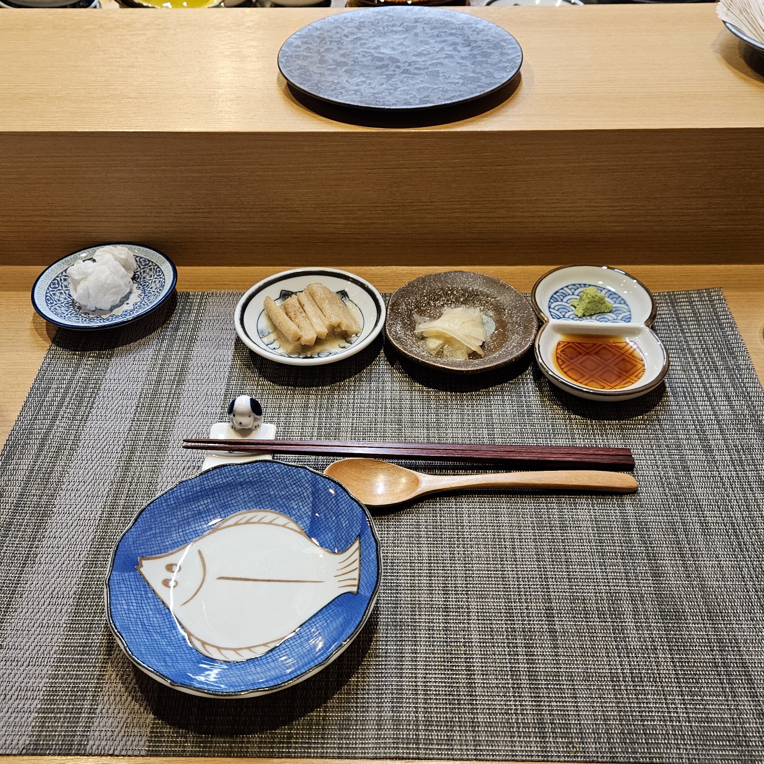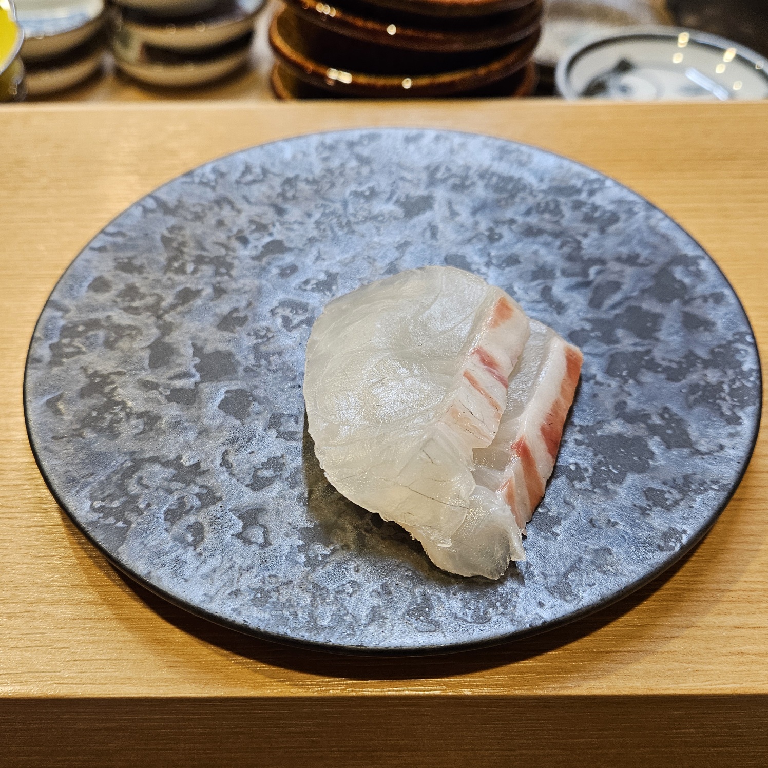 구성이 아기자기해서 귀여웠다. 메뉴는 츠마미 포함 총 20개 나오는데, 전체적으로 네타들이 큼지막해서 다 먹고나면 꽤 배부르다. 양이 적은 사람들은 밥 양을 조절해달라고 하는 게 좋을 것 같고, 일반적인 성인 남자라면 딱 기분좋게 먹을 수 있는 양이다. 차완무시에는 블루치즈가 들어간 것 같다. 그래서 부드러운데도 진득한 느낌이다. 오른쪽 츠마미는 참돔이다. 두툼하게 나와서 입맛을 확 돋군다.