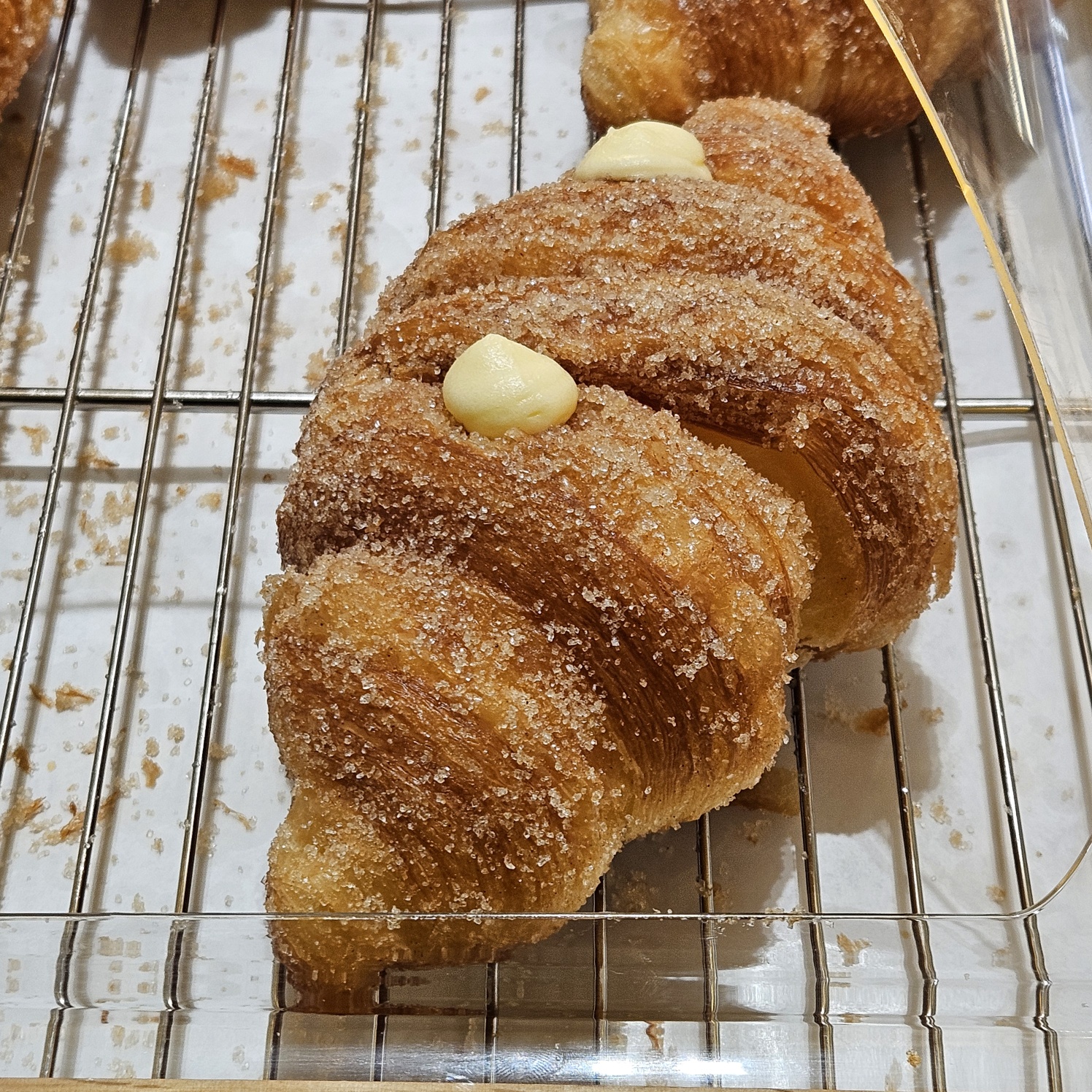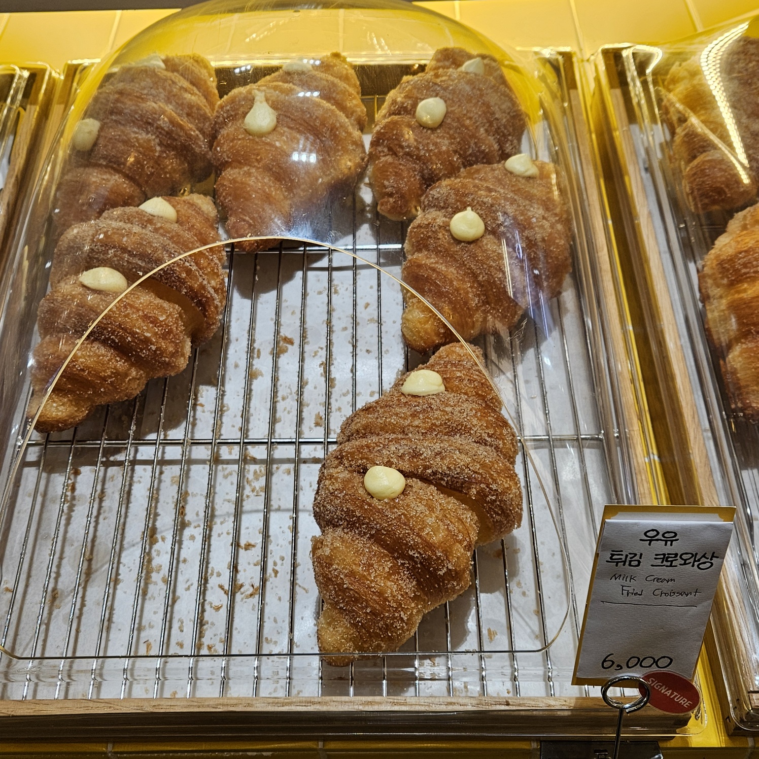 두 번째는 우유튀김 크로와상. 오쿠쿠의 시그니처 메뉴라고 합니다. 전 집으로 포장한 뒤 다음날 먹었는데, 냉동보관 한 뒤 에어프라이어에 4분 정도 돌려 먹으니 갓 구운 것처럼 맛있었어요. 식감은 패스츄리 꽈배기와 비슷한 맛인데 보슬보슬하고 부드러웠어요.