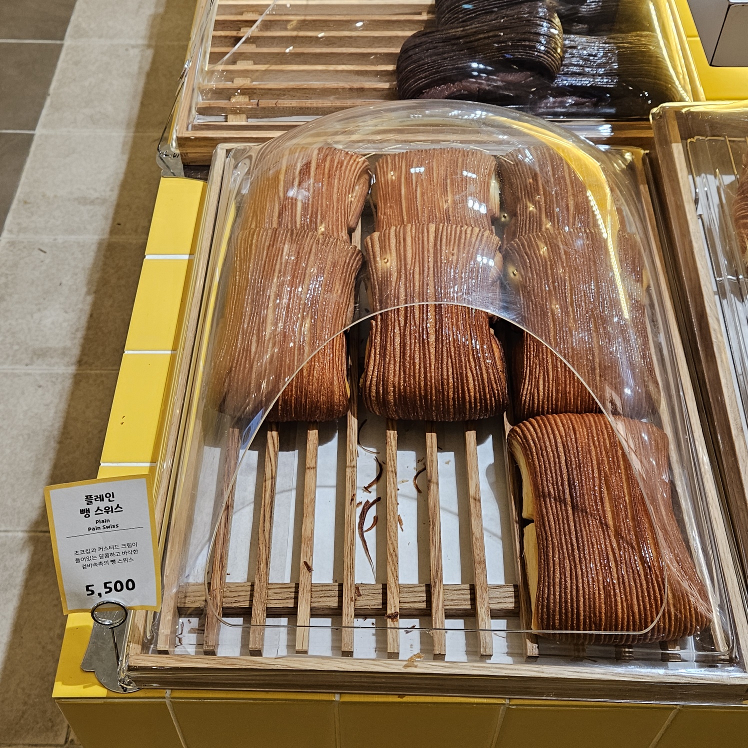 전 두 메뉴를 포장해 와서 먹었는데요, 첫 번째는 플레인 뺑스위스 입니다. 작년까지만 해도 빵지순례 할 때 못 보던 빵인데, 올해 들어 곳곳에서 보이더라고요. 크로와상이랑 비슷할 줄 알았는데, 더 부드럽고 폭신한 식감입니다.