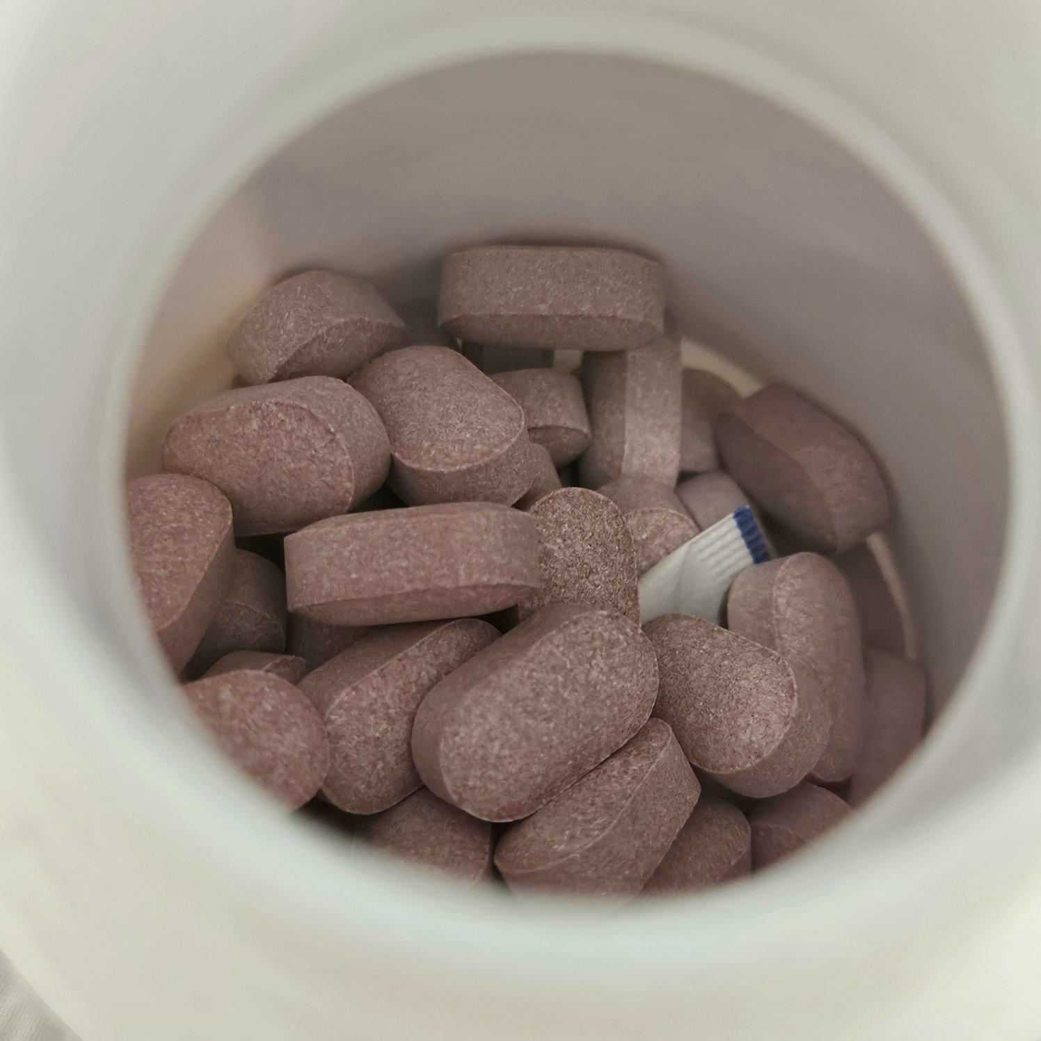 보시는 것처럼 크기가 엄청 작죠! 알약은 약간 보라빛을 띄고 있는데 타트체리가 함유되었기 때문에 자연스럽게 나타나는 색상이라고 하더라구요~